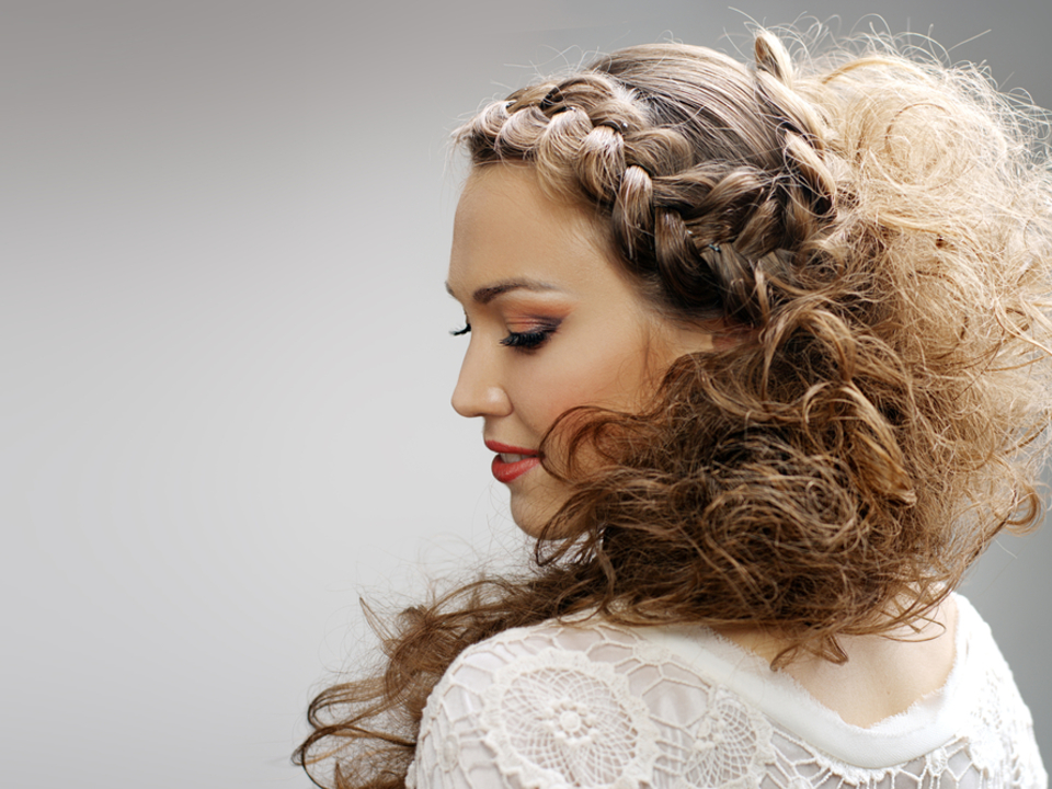 Anche in questo caso i capelli ricci fanno un bel gioco, si può realizzare una treccia di grandi dimensioni da fissare con apposito nastro dallo spirito romantico.