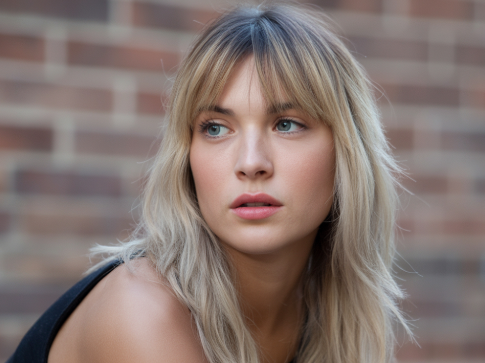 La struttura dell’Indie Cut si concentra soprattutto nella zona alta, dove prende forma attraverso una scalatura progressiva che parte da una frangia lunga e leggermente wispy. Questa frangia morbida non ha linee nette, ma scivola naturalmente verso sfilature più decise che incorniciano il viso con delicatezza. Il risultato è una cornice che amplia visivamente il taglio sul piano orizzontale, regalando subito maggiore armonia ai lineamenti. È un design che permette di equilibrare i volumi e di dare leggerezza senza togliere consistenza, rendendolo perfetto per chi desidera un look fresco ma curato.